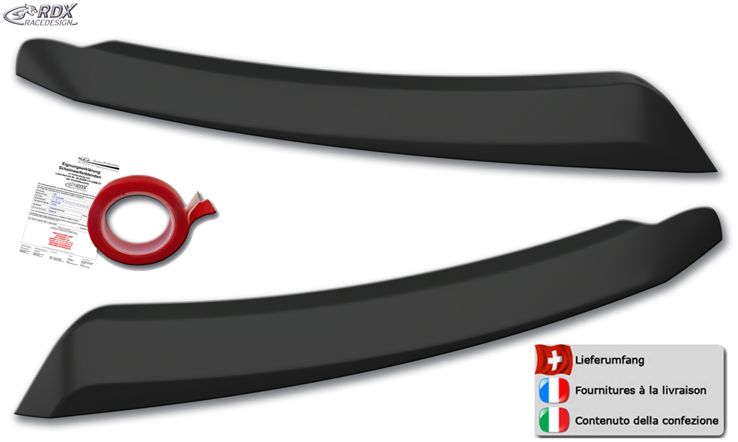 > Die Scheinwerferblenden werden einfach mit dem beiliegenden Montageklebeband auf das Scheinwerferglas geklebt.