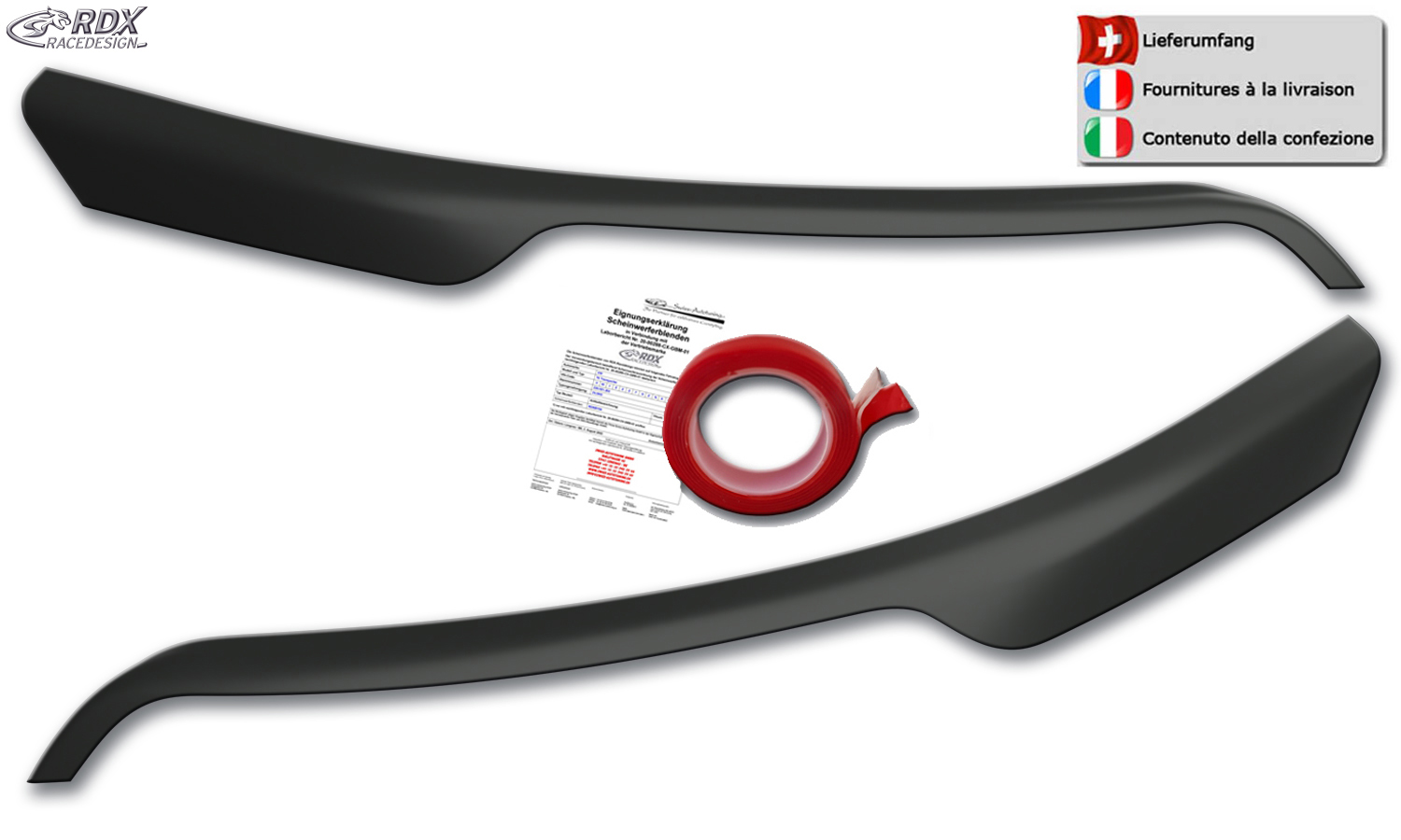 > Die Scheinwerferblenden werden einfach mit dem beiliegenden Montageklebeband auf das Scheinwerferglas geklebt.