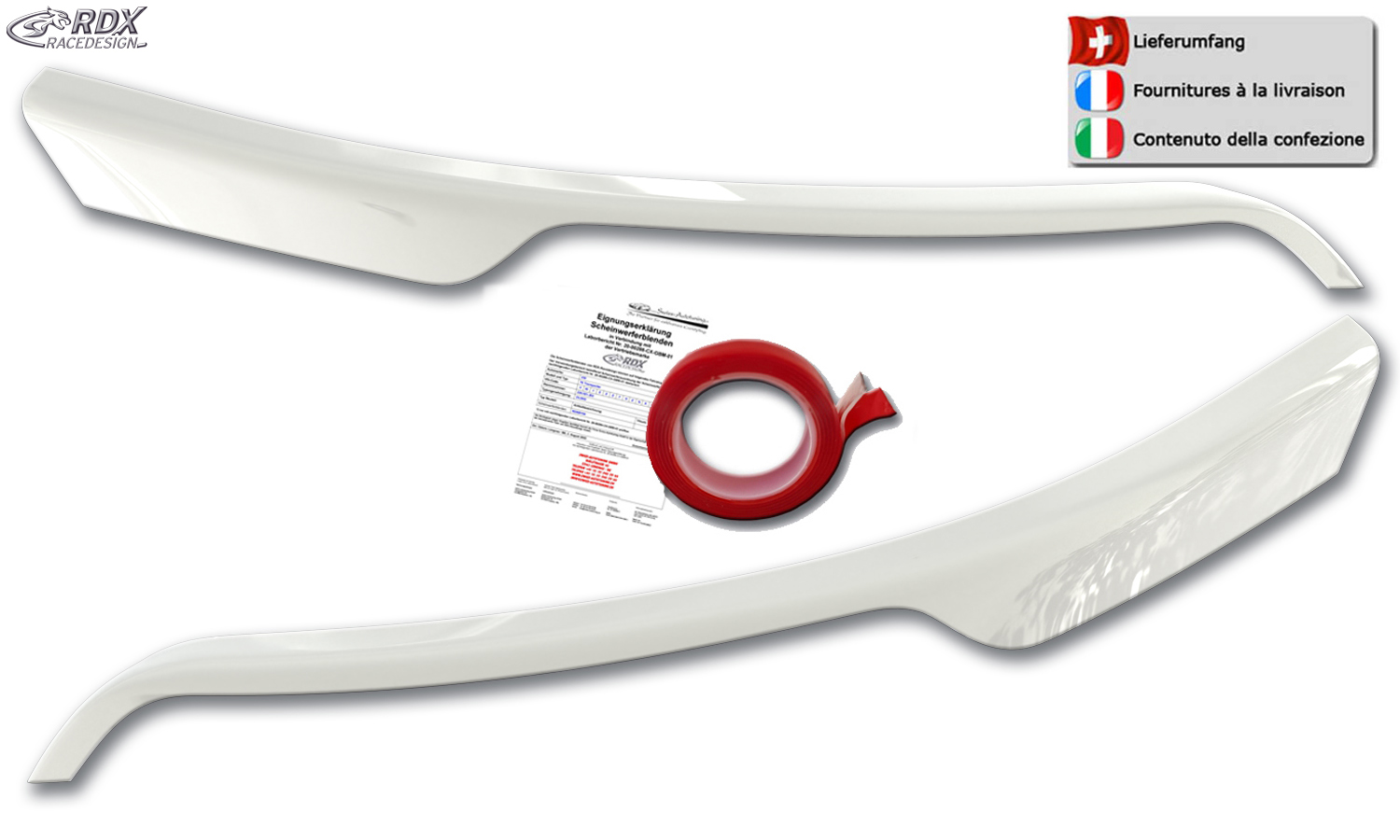 > Die Scheinwerferblenden werden einfach mit dem beiliegenden Montageklebeband auf das Scheinwerferglas geklebt.