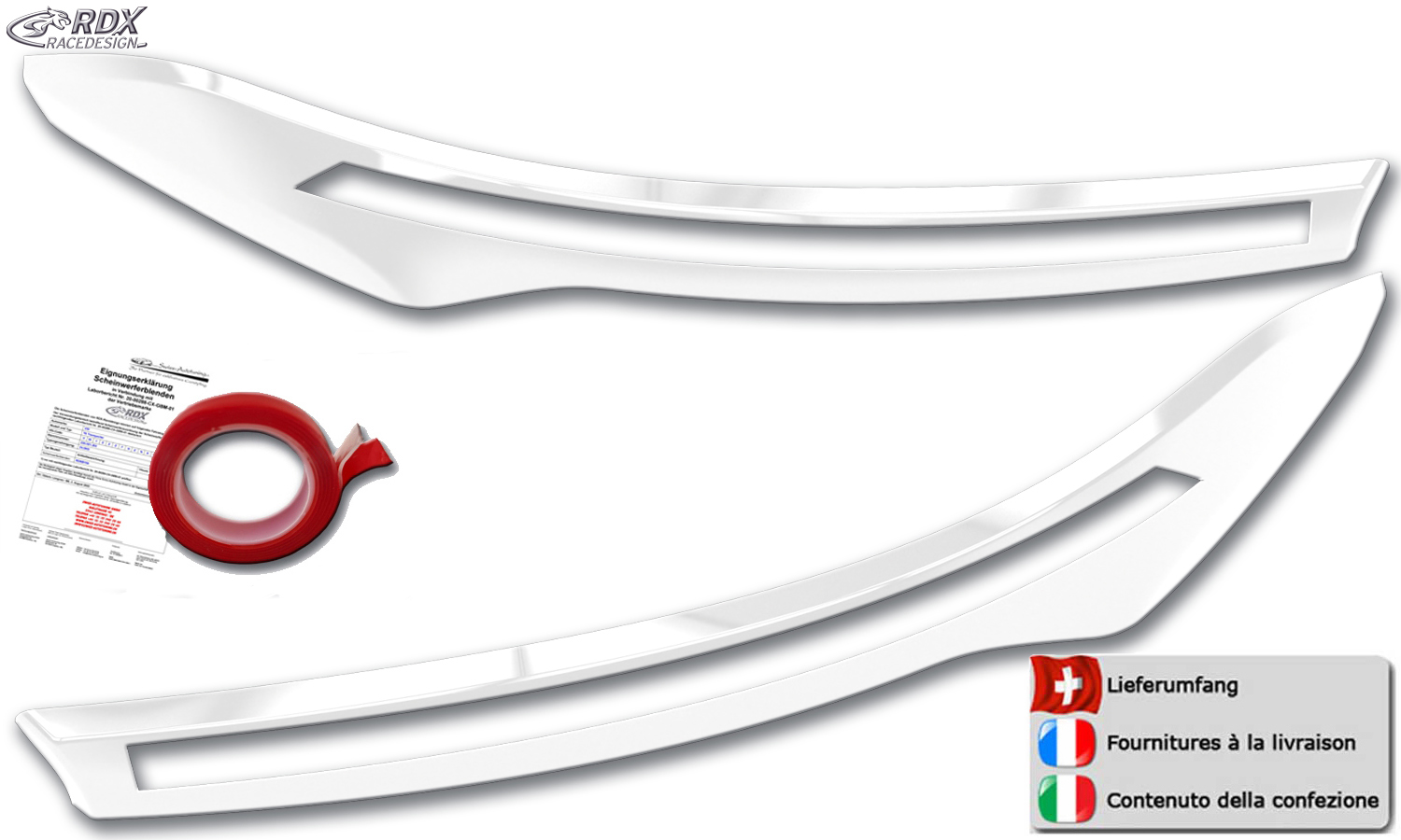 > Die Scheinwerferblenden werden einfach mit dem beiliegenden Montageklebeband auf das Scheinwerferglas geklebt.